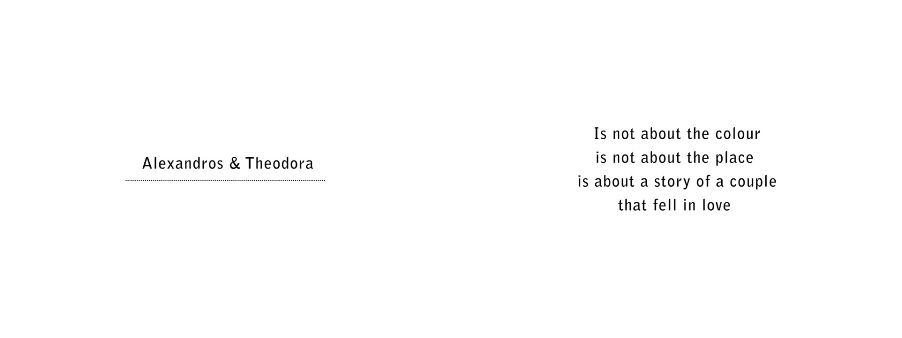 Σχεδόν όλοι επιχειρούν να φωτογραφίσουν ένα γάμο. Εμείς επιχειρούμε κάτι διαφορετικό. Να καταγράψουμε μια μοιραία συνάντηση ζωής. Μας ενδιαφέρει εκείνη η ατμόσφαιρα που η όλη διαδικασία προσφέρει. Εκείνο που δίνει η στιγμή.
